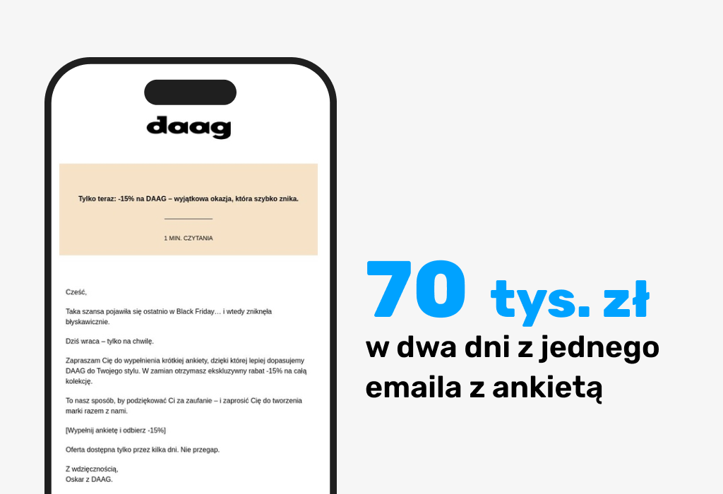 ~70 000 zł w dwa dni – sprzedaż w kampanii oferującej zniżkę 15% w zamian za wypełnienie ankiety