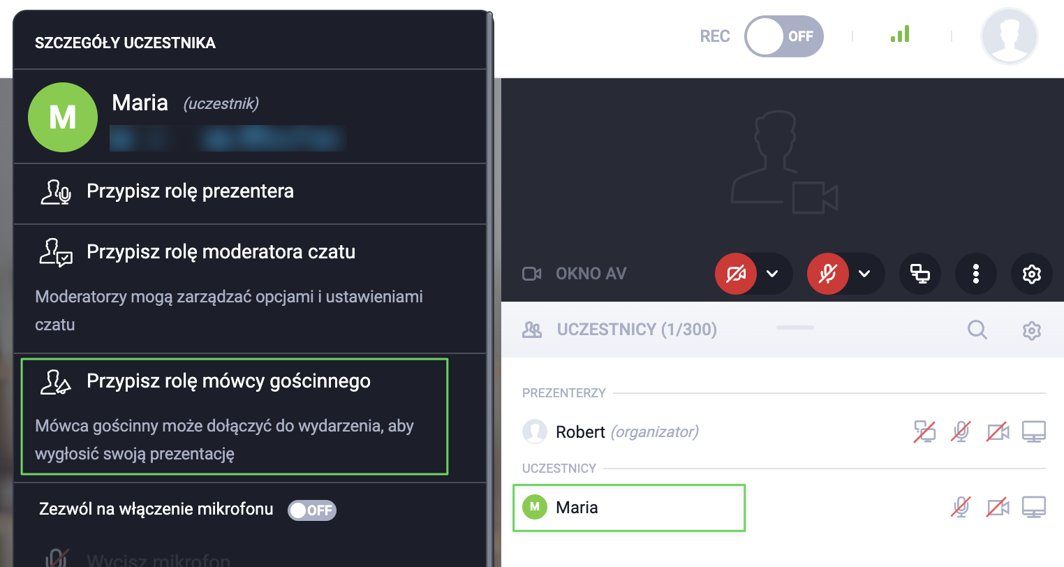 Jak nadać uprawnienia prezentera uczestnikowi webinaru