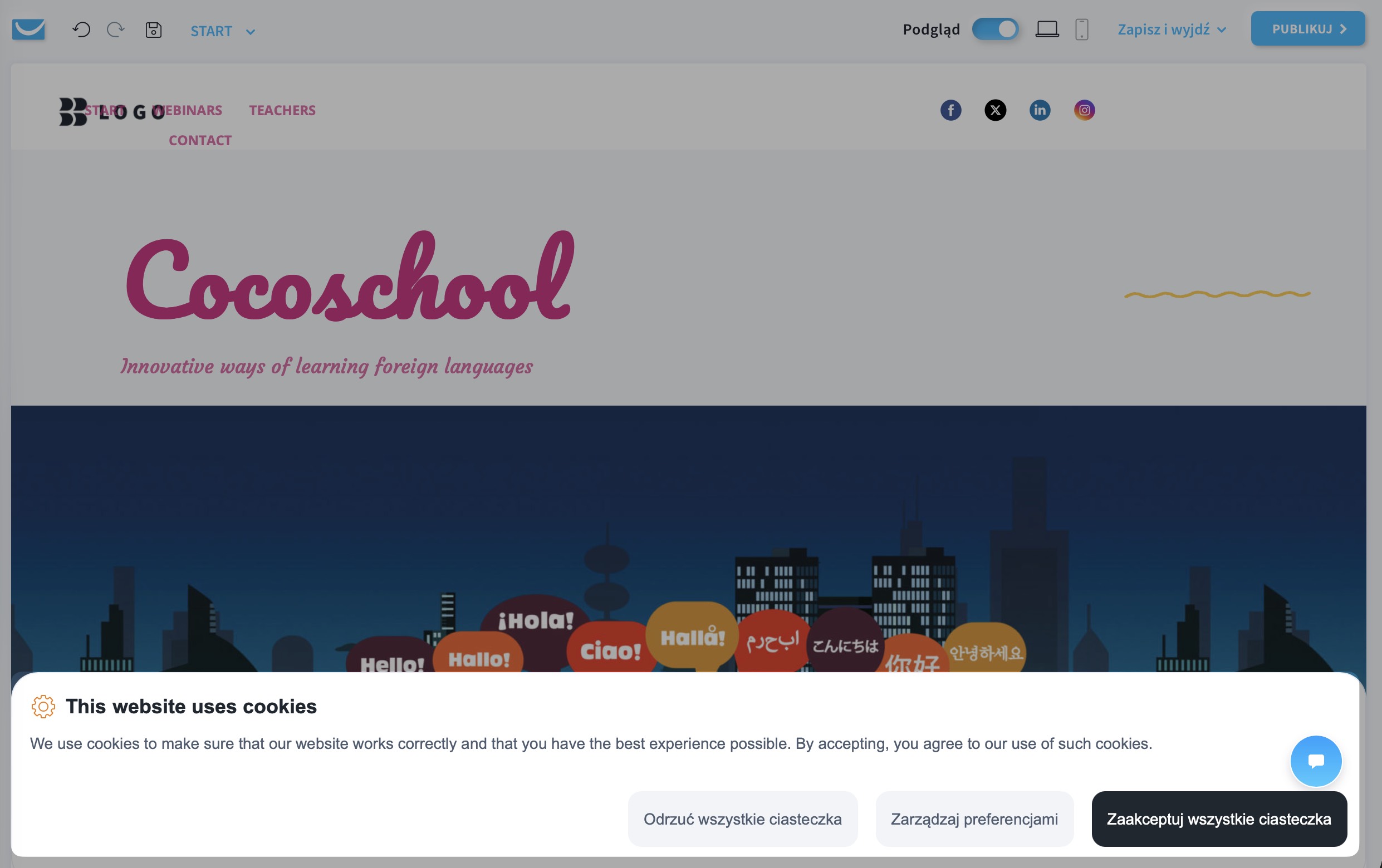 - Po opublikowaniu strony odwiedzający zobaczą na niej informację o plikach cookie.