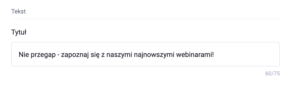 - wpisz Tytuł (do 75 znaków) – wyświetlany nad lub obok przycisku CTA