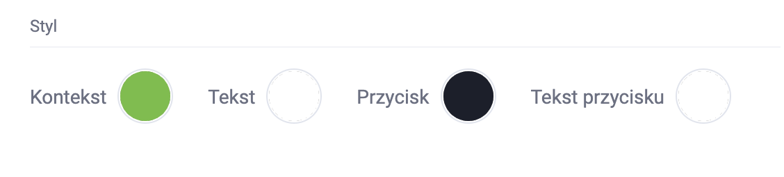 - W sekcji Styl wybierz kolory Kontekst, Tekst, Przycisk, oraz Tekst przycisku.