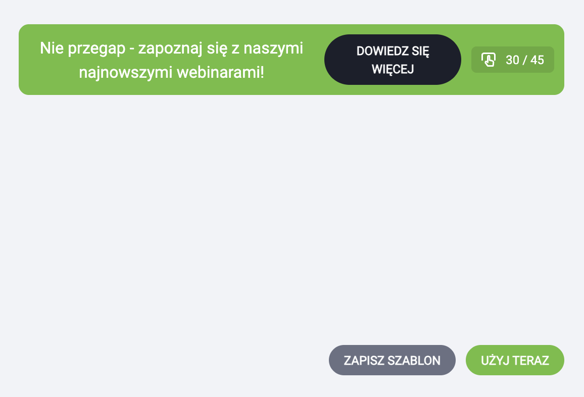 - Gdy wszystko będzie gotowe, kliknij ZAPISZ SZABLON, aby zapisać CTA jako szablon, i/lub UŻYJ TERAZ, aby wyświetlić go natychmiast.