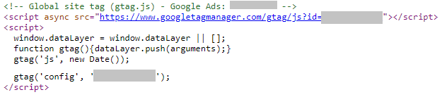 Przykład fragmentu kodu do instalacji gtag na stronie sklepu