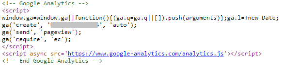 Upewnij się, że fragment kodu wklejony w celu zainstalowania analytics.js lub gtag.js na stronie sklepu jest obecny.