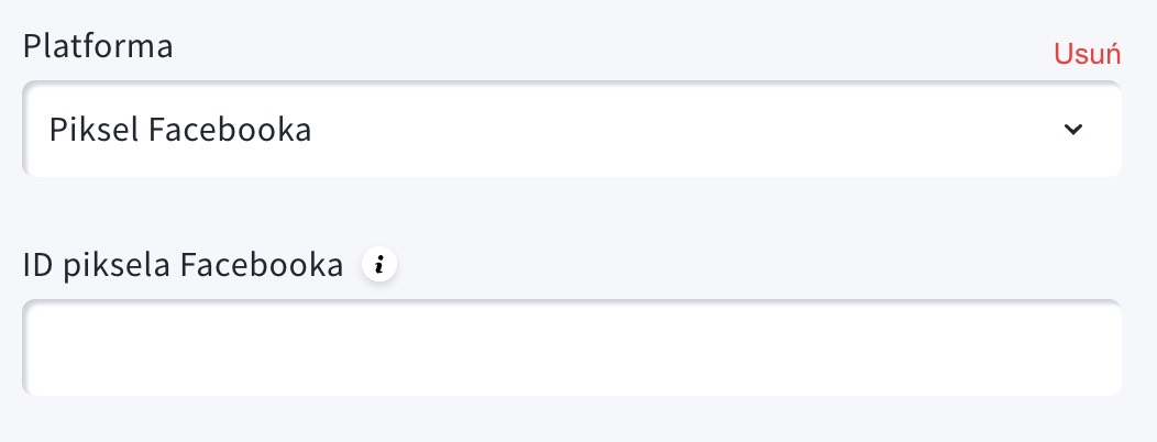 - Wybierz Piksel Facebooka z listy i wklej swój identyfikator piksela Facebooka.