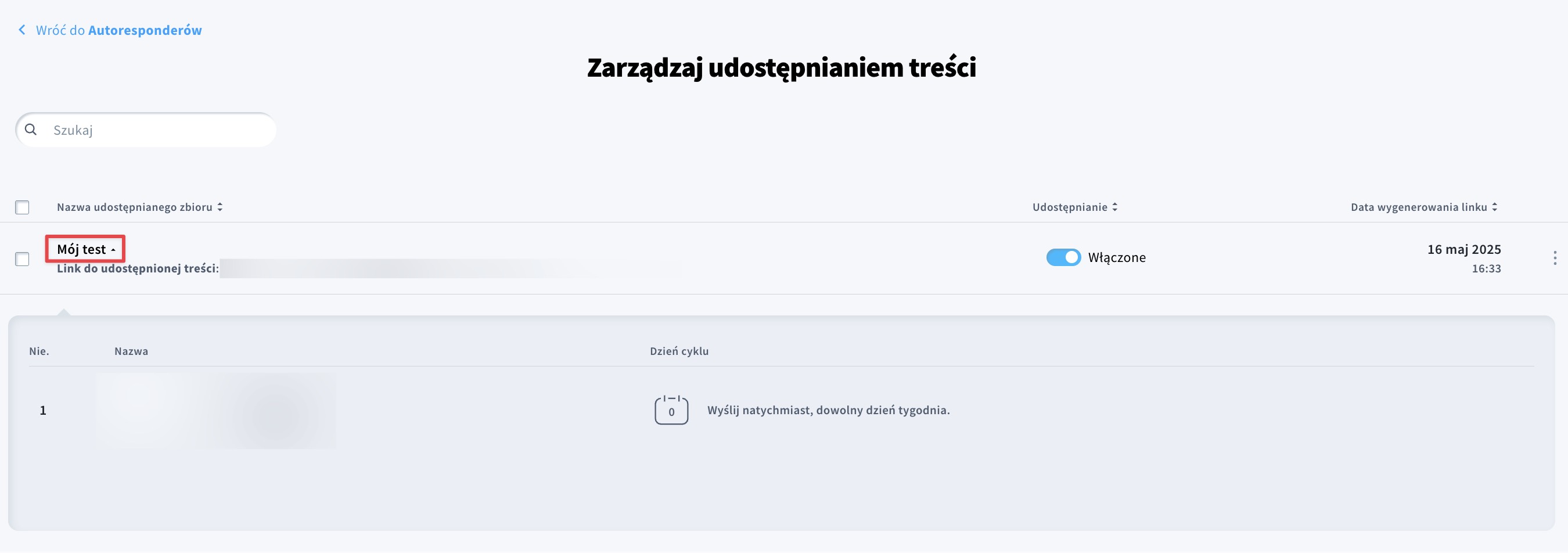 Aby udostępnić jeden lub więcej autoresponderów, wykonaj następujące kroki: