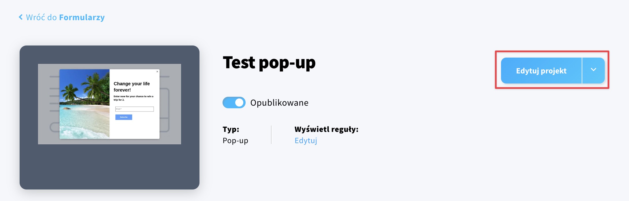 - Wybierz swój formularz i kliknij Edytuj projekt.